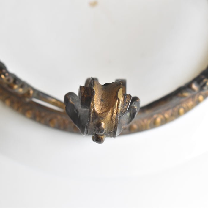 状態:真鍮部分は変色していたり少し歪みが見られますがアンティークの綺麗な雰囲気です。お皿部分はかけやヒビがなくとてもいい状態です。
