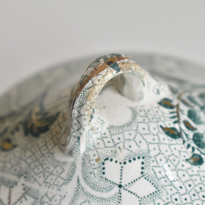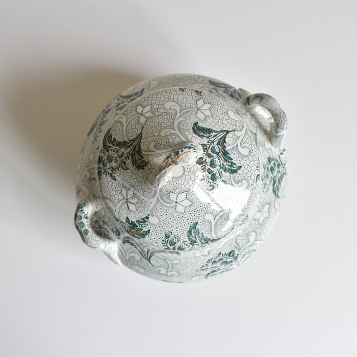 Creil et Montereau窯(Muguetシリーズ(ミュゲ:鈴蘭)のアンティークシュガーポットです。