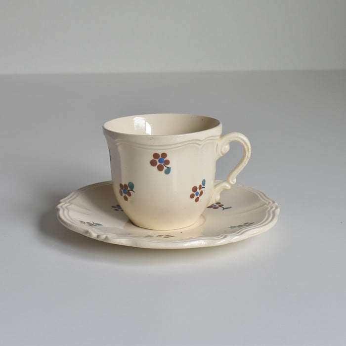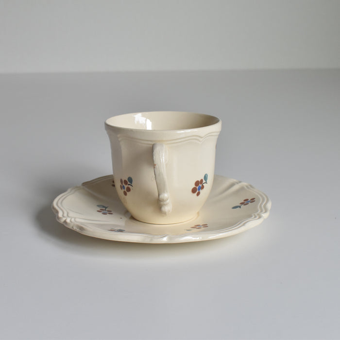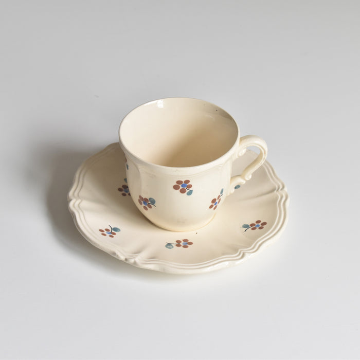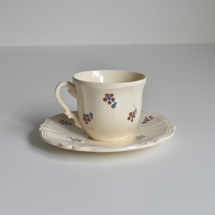 手描きの小花が、このカップ&ソーサー独特の温もりと個性を与えています。