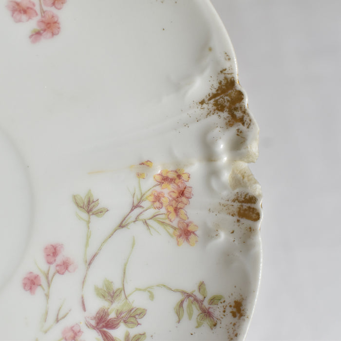 状態:目立ちにくいですが、カップの縁に小さな欠けございます。ソーサーにも数箇所欠けがございますまた欠けと繋がって2.5cmほどのひびがございます。(要写真確認)