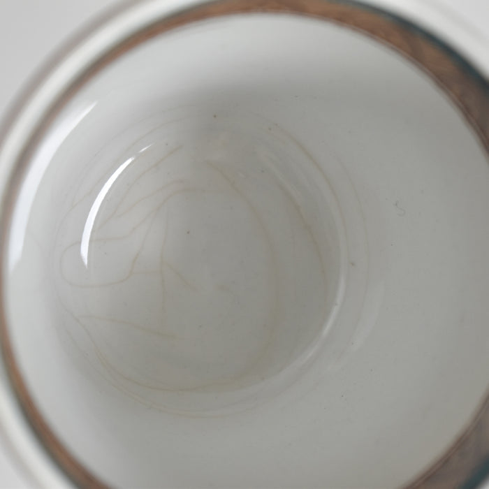 状態:貫入が見られます。ソーサーに縁から見込みまでのヒビがございます。カップは裏にひびのあとがございますが通過していません。