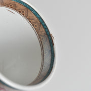 トランスファーの上からハンドペイントで色が載せられ、手の込んだデザイン。