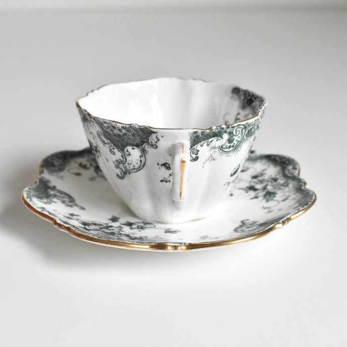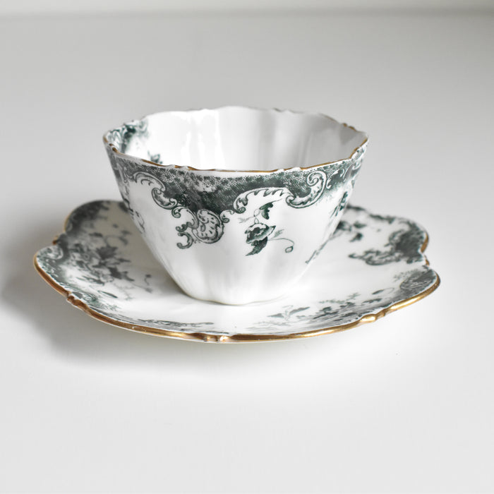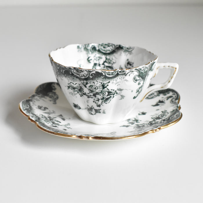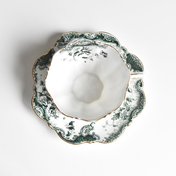 縁の金と緑のトランスファーがマッチしていて素敵なカップアンドソーサーです。