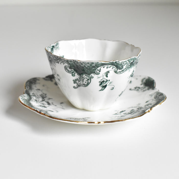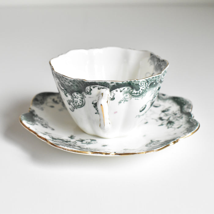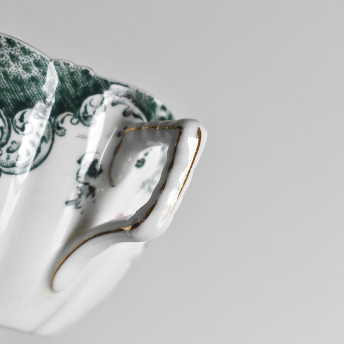 縁の金と緑のトランスファーがマッチしていて素敵なカップアンドソーサーです。