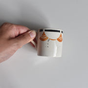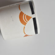 黒とオレンジのステンシルが描かれていてモダンなデザインです。