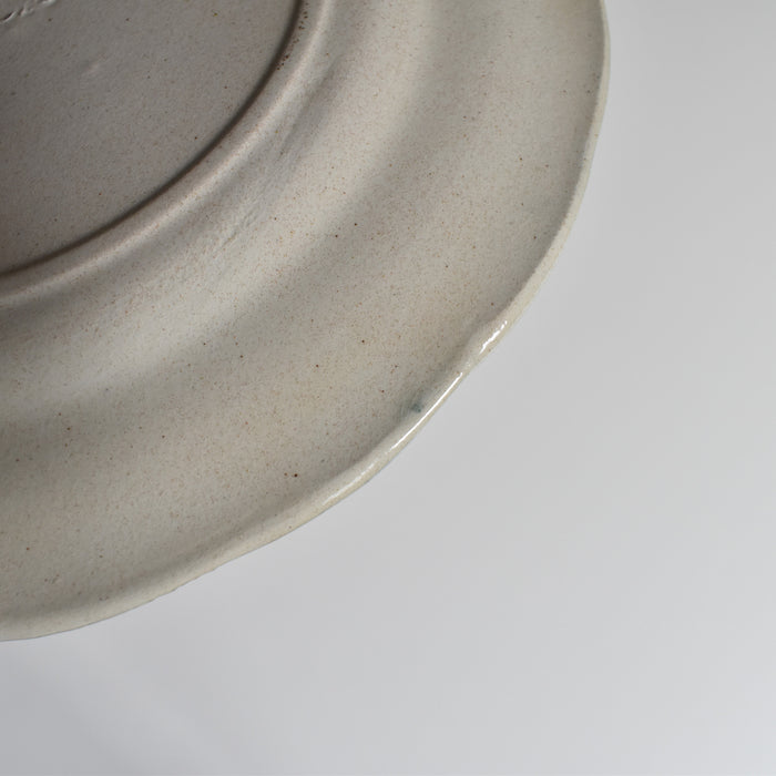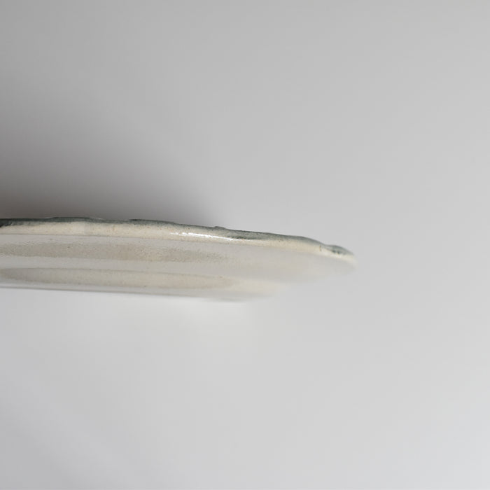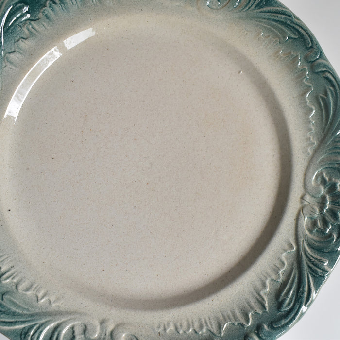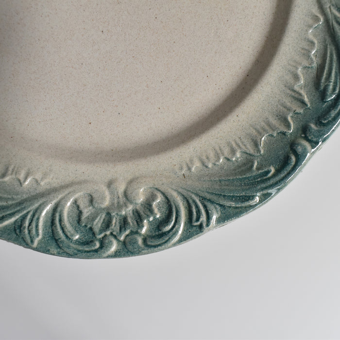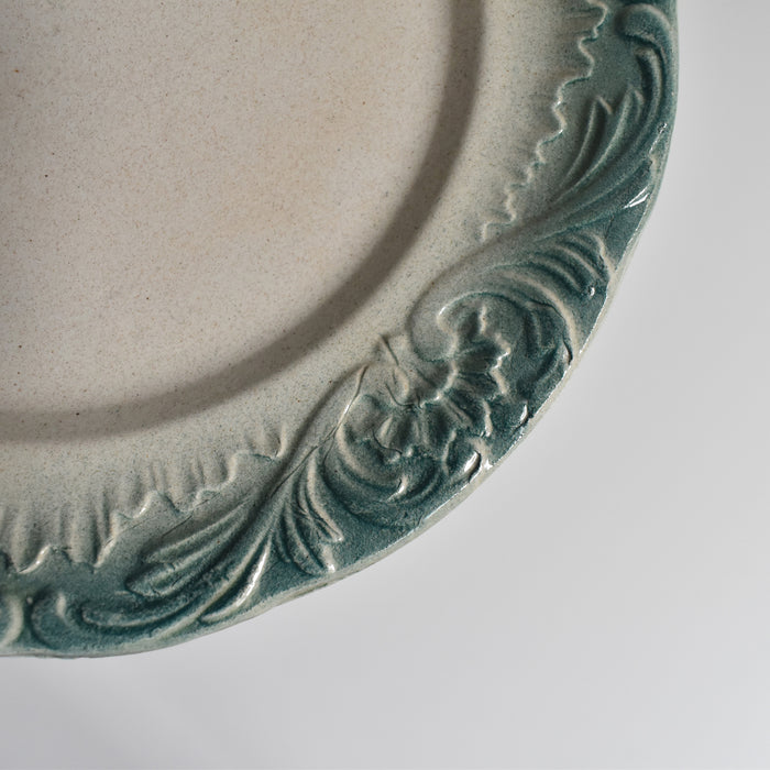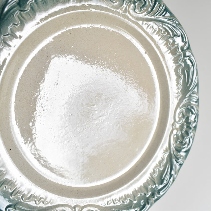 立体感のある縁のレリーフにグリーンの色が重なり、より柄がはっきりと感じられます。シンプルでありながら存在感のあるプレートです。