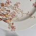 鶯が2羽枝にとまり何やら話をしているよう。色鮮やかな花々と相まって可愛らしい印象のプレートです。