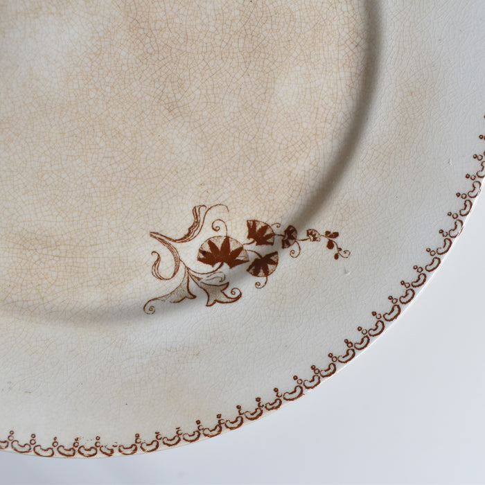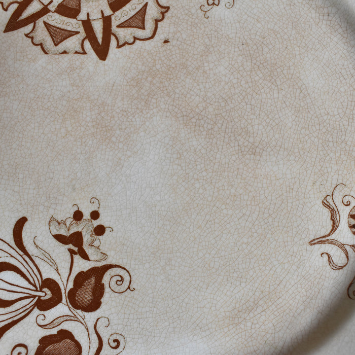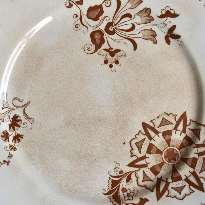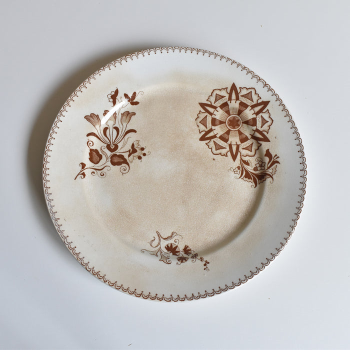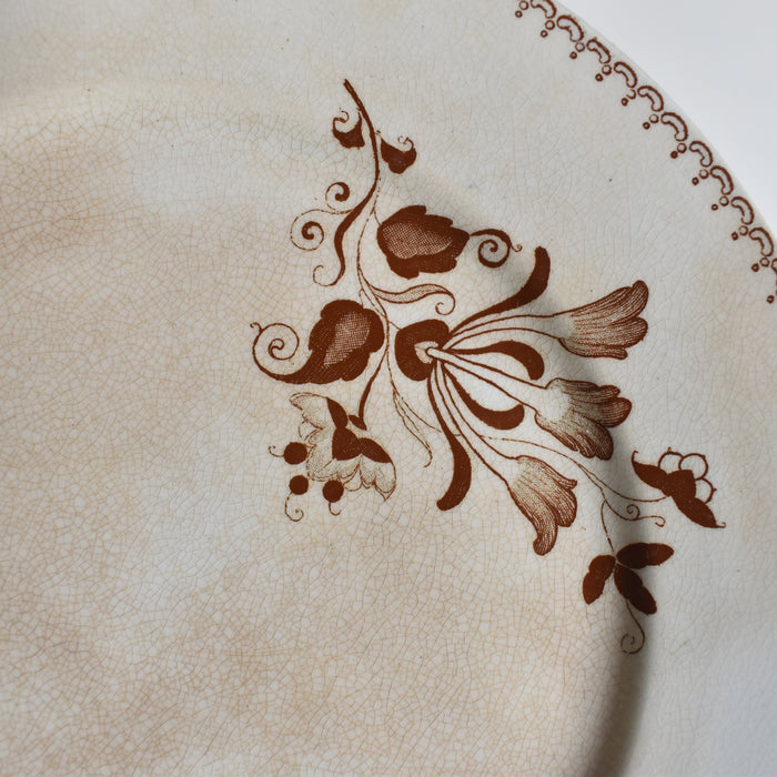 シノワズリを感じさせるブラウンのアンティークデザートプレートです。シノワズリとは、17世紀にヨーロッパの貴族や富裕層の間で流行した中国風のデザインのこと。
