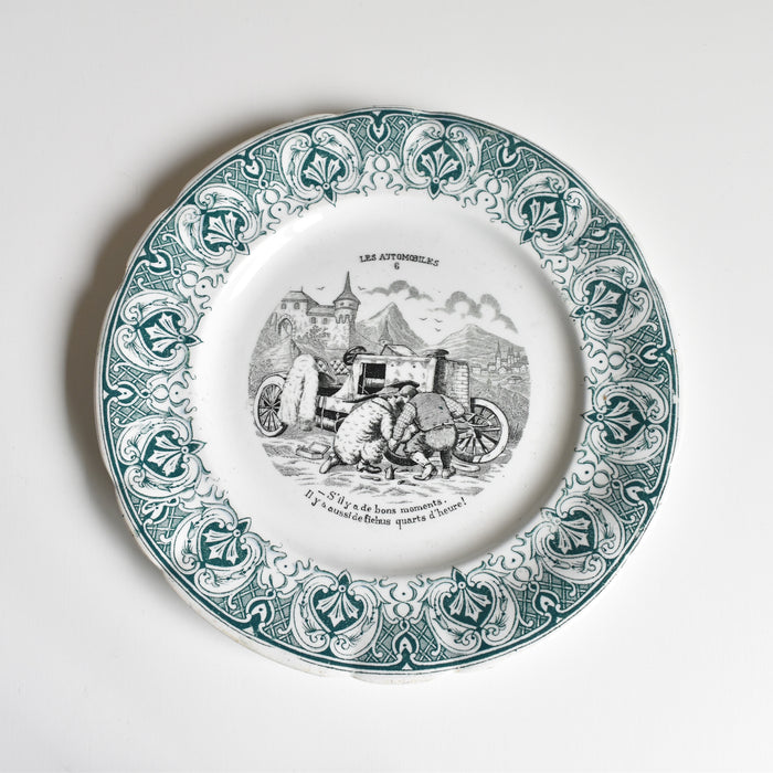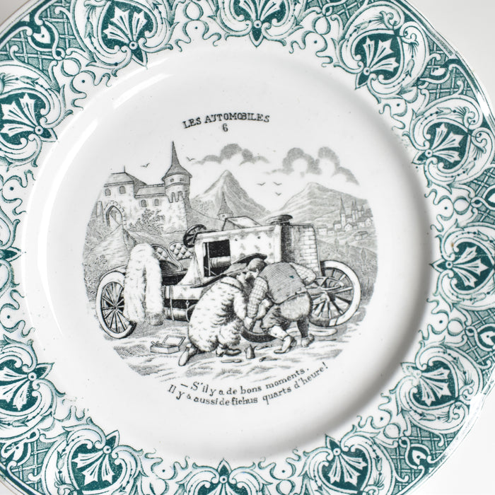 Saint-Amand窯のアンティークデザート絵皿Les automobilesシリーズN6です。