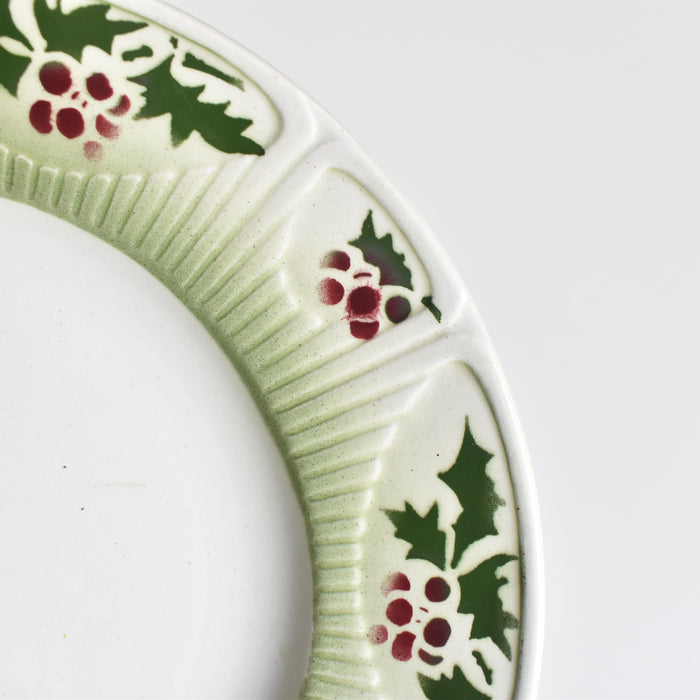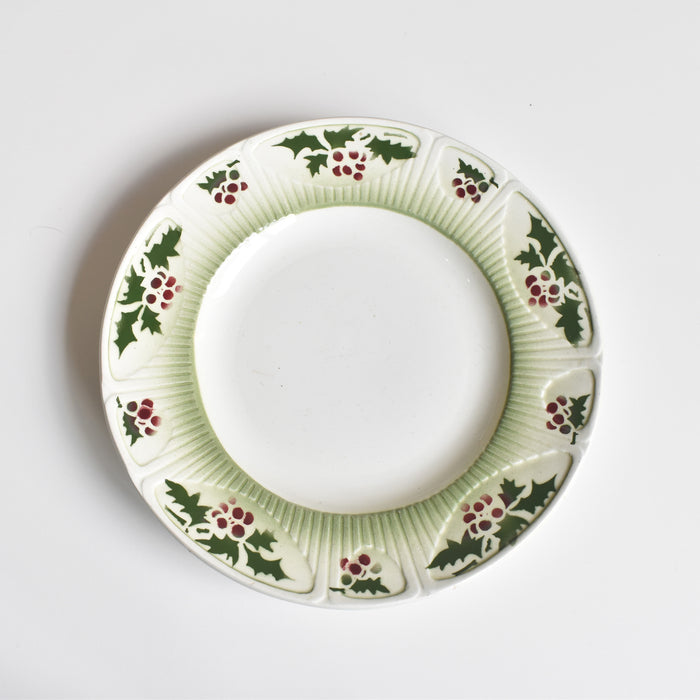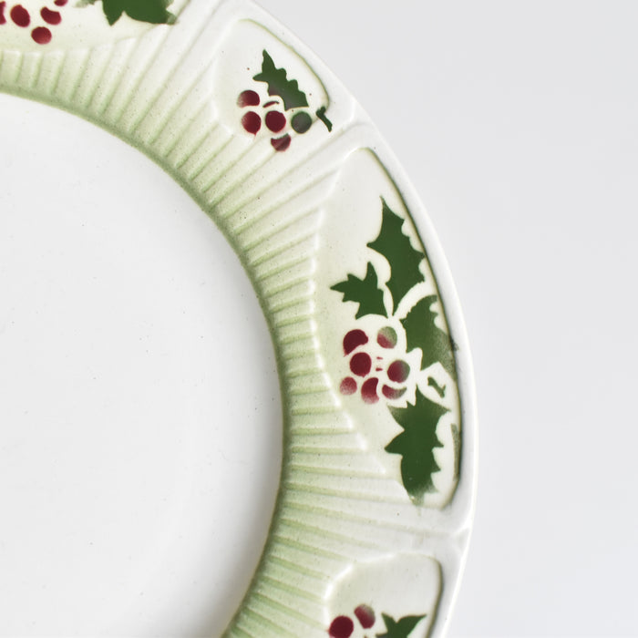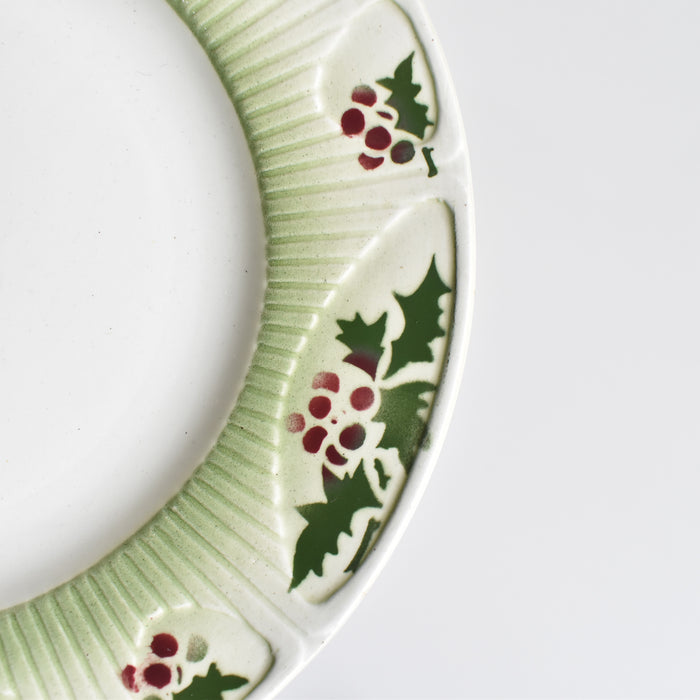 柊の絵柄とクリスマスカラーが魅力的なデザートプレート。レリーフと絵柄が溶け合った素敵な一品です。クリスマスにぴったりなデザートプレートです。