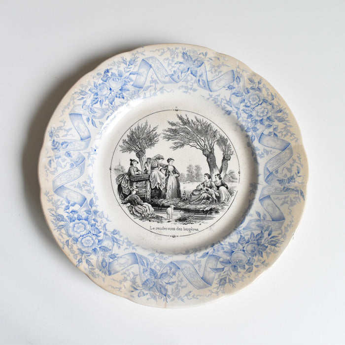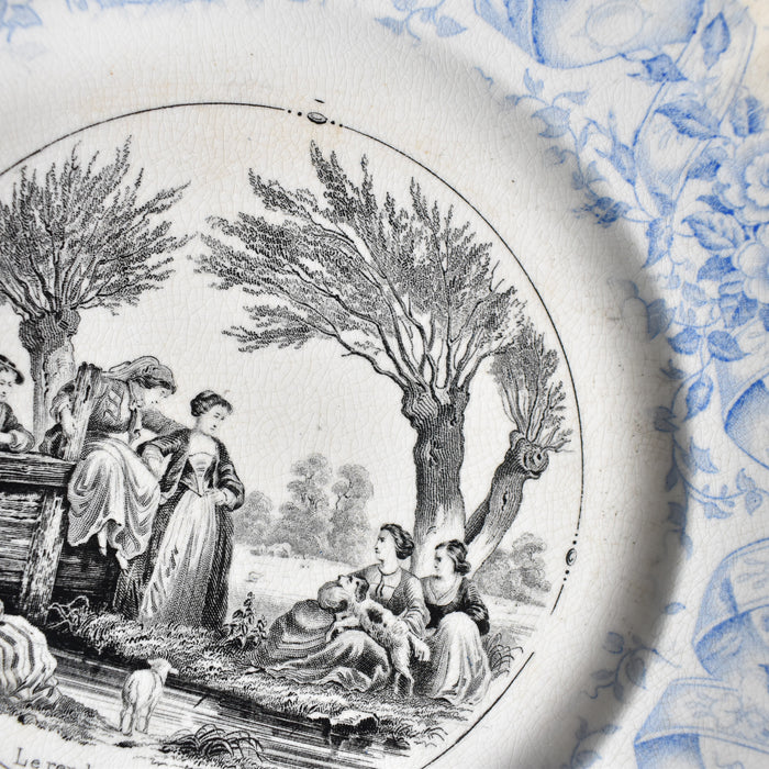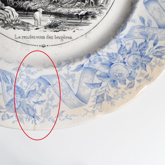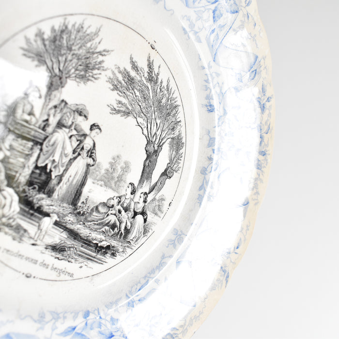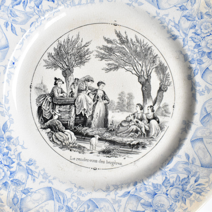 アンティークデザート絵皿 U&Cサルグミンヌ 1855年 "Le rendez-vous des bergères"