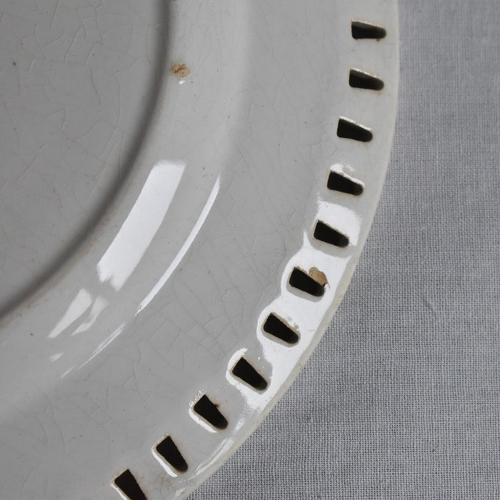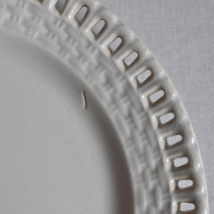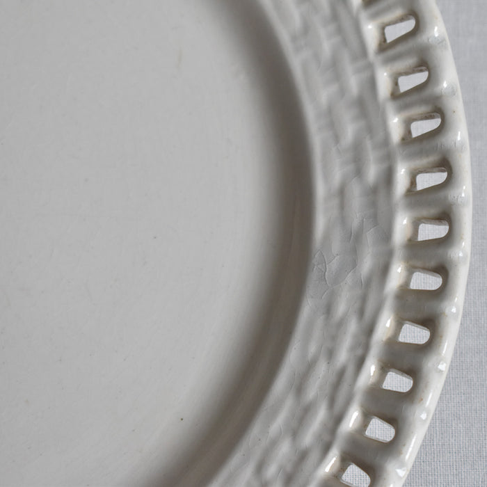 1850年頃のものです。オープンワークのリムにパニエ模様があり、可愛らしいレースとカゴが合わさったような可憐なデザインです。