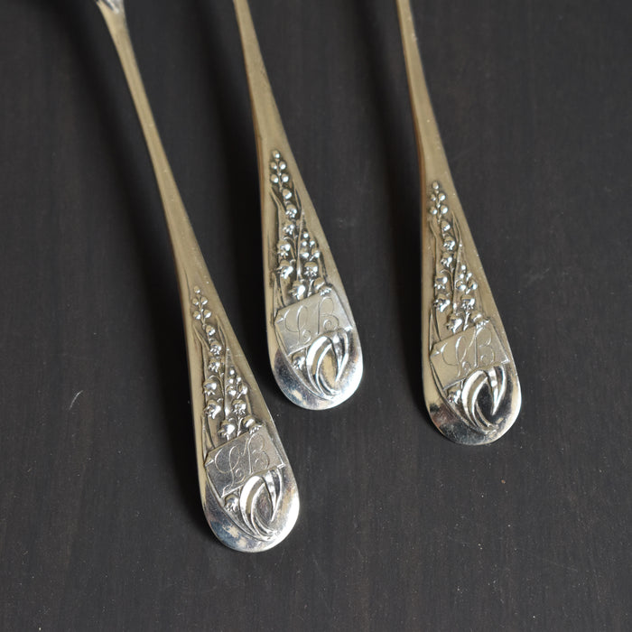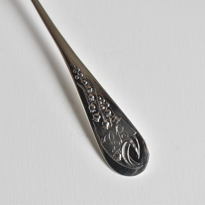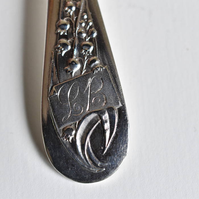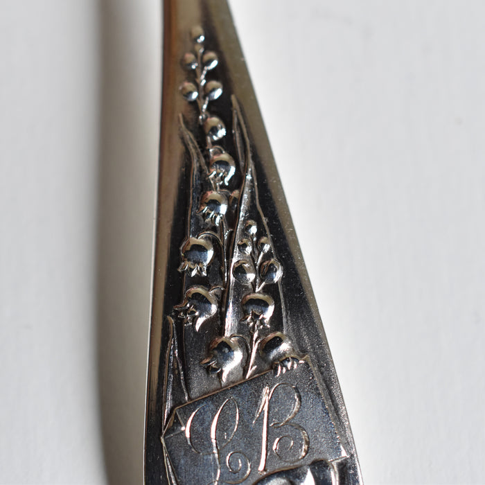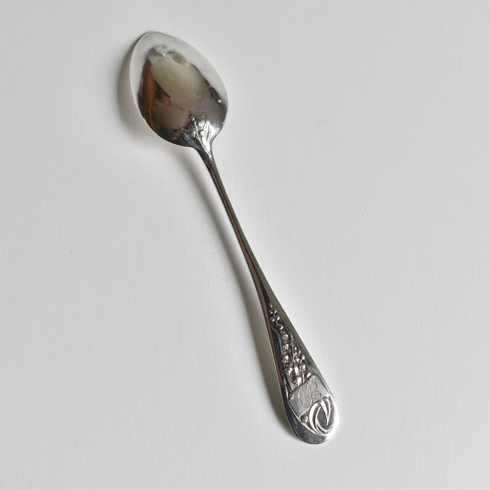 LBのイニシャルが鈴蘭の絵柄と相まって可愛いらしいデザートスプーン。