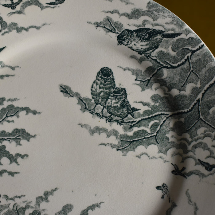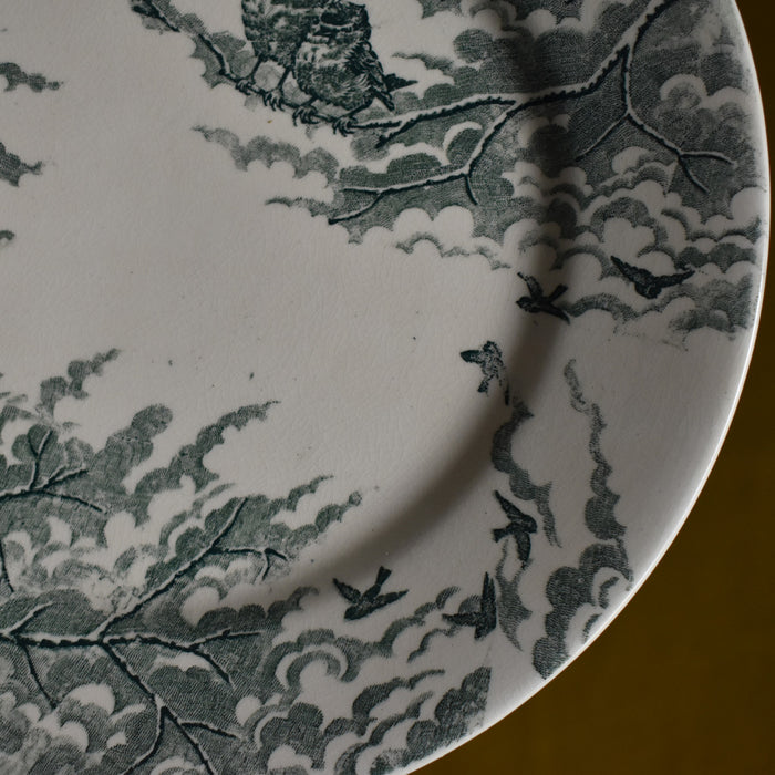 遠くには自由に飛び回る小鳥たちも描かれ、フラットなプレートに奥行きを感じます。小鳥のさえずりを想像したり、周りの風景を思い浮かべたりしながら眺めるのも、楽しみの一つです。