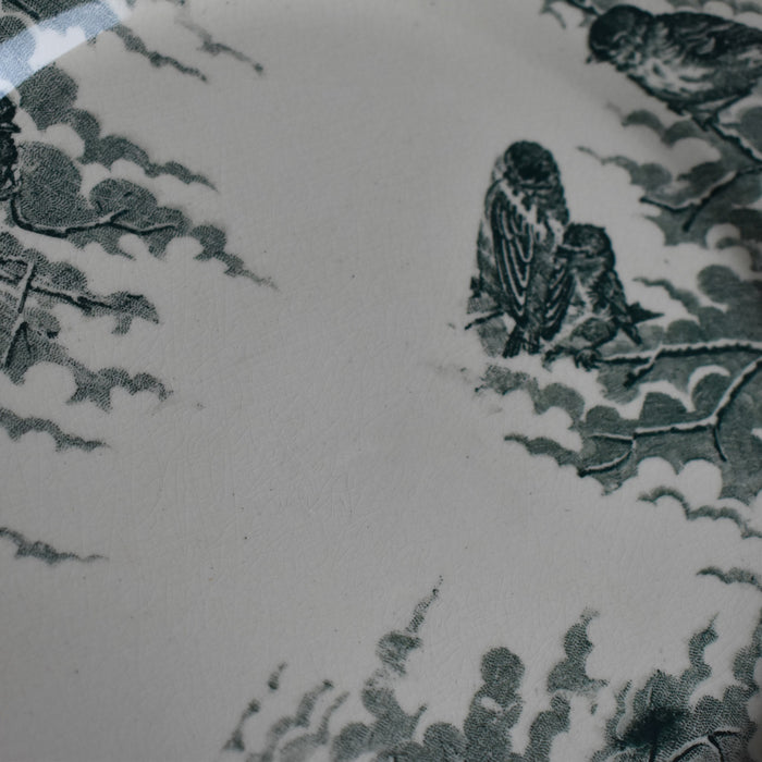 遠くには自由に飛び回る小鳥たちも描かれ、フラットなプレートに奥行きを感じます。小鳥のさえずりを想像したり、周りの風景を思い浮かべたりしながら眺めるのも、楽しみの一つです。
