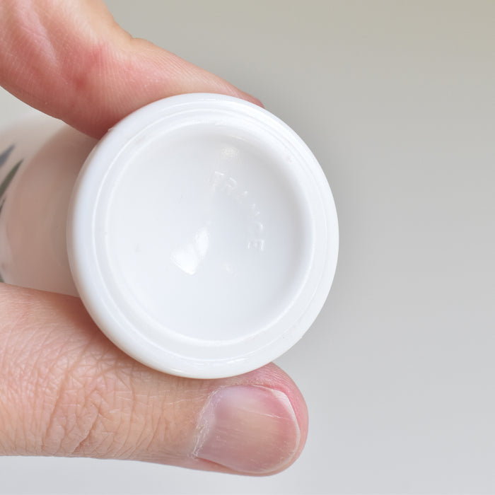 ミルクガラスに描かれた繊細な花柄が、食卓を優しく彩ります。