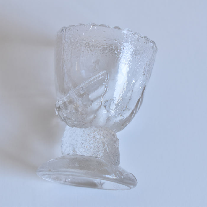 脚の部分が鳥のデザインになっており、卵をのせて飛び立とうとしているようです。