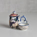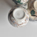 このセットの主役であるマスタードポットには、ジアン窯の豪華な「ピヴォアーヌ(芍薬)」シリーズにも通じる、大胆かつ繊細な手描きの花が咲き誇ります。