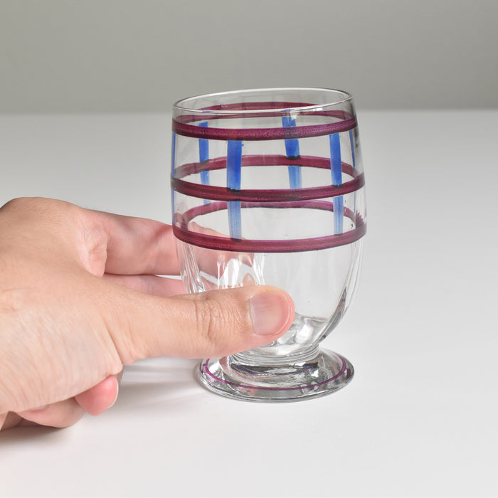 可愛いらしい形の手吹きグラスのゴブレットにバスクがらが施されています。