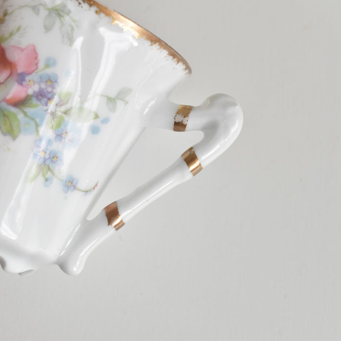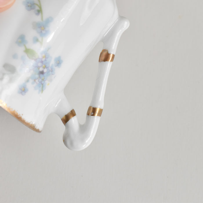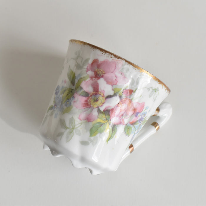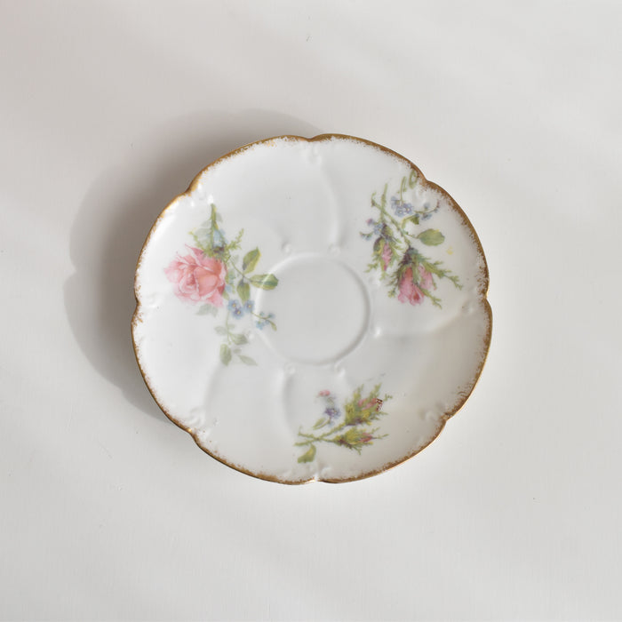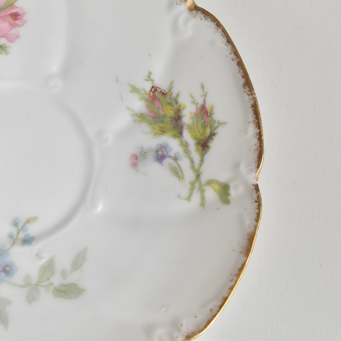柔らかなタッチで描かれている花々と金彩、そして美しいレリーフが調和した素敵なカップ&ソーサーについつい見惚れてしまいます。