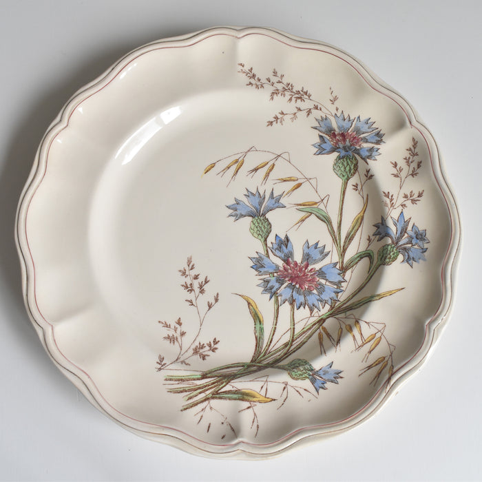 Longchamp窯(ロンシャン窯)のアンティークプレートMarguerittes(マーガレット)シリーズのヤグルマギクモチーフです。