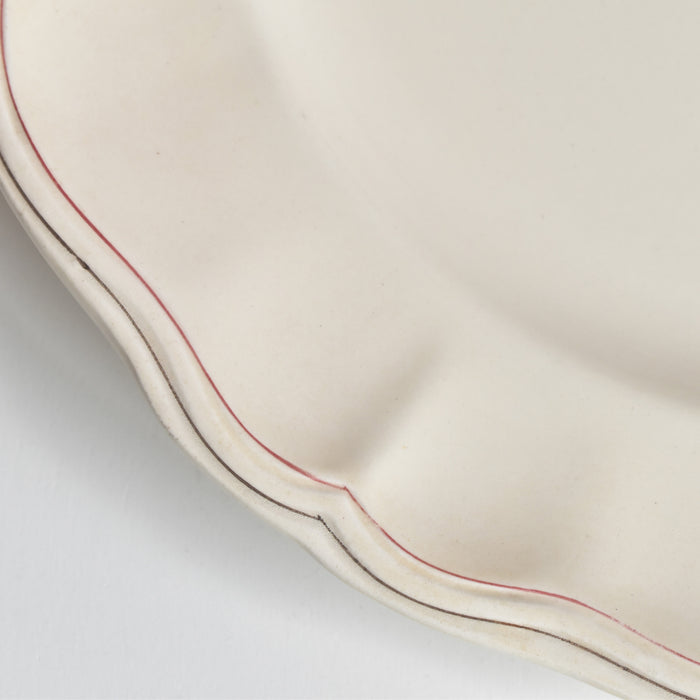 縁を彩る「花リム」と呼ばれる波打つ優美なレリーフと、それに沿うように引かれた細いラインは、