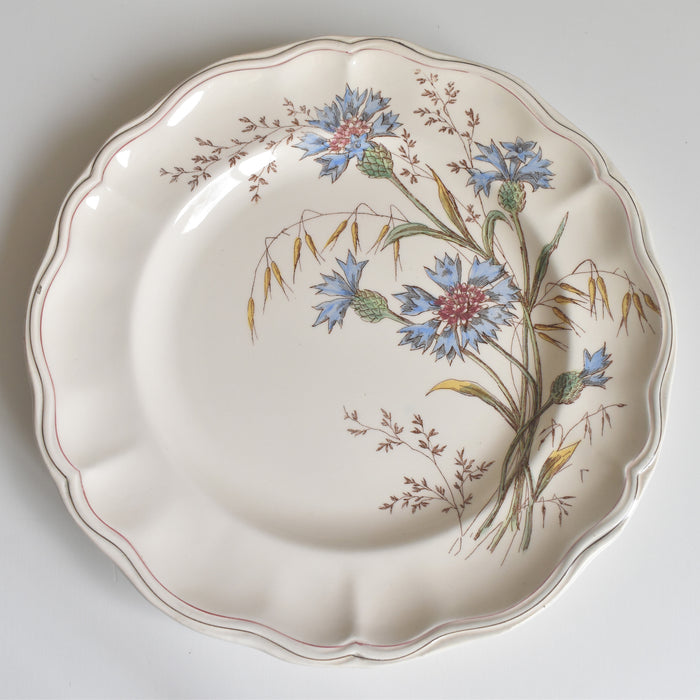Longchamp窯(ロンシャン窯)のアンティークプレートMarguerittes(マーガレット)シリーズのヤグルマギクモチーフです。
