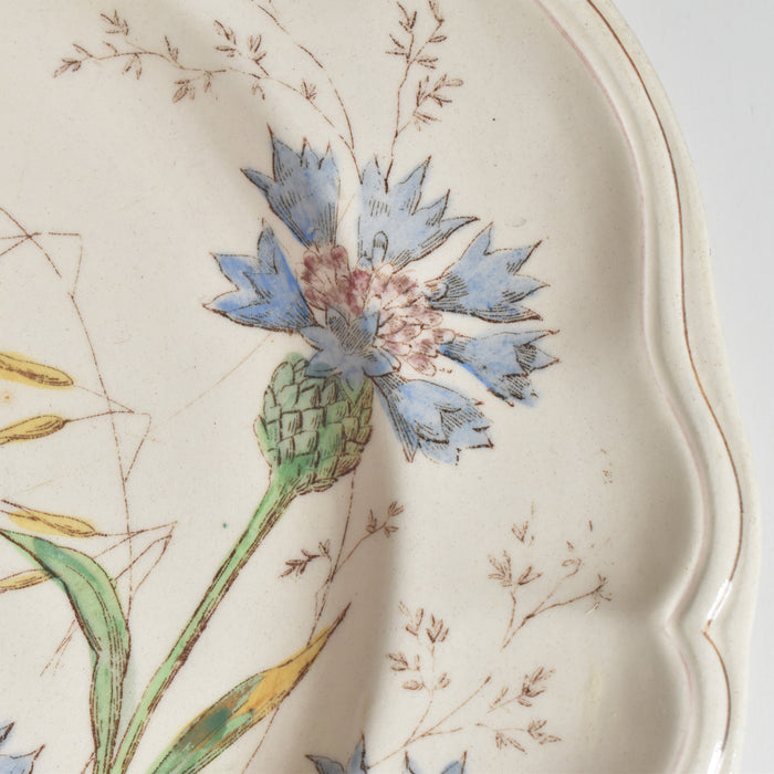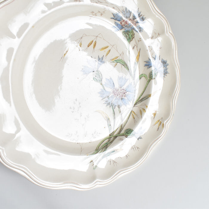Longchamp窯(ロンシャン窯)のアンティークプレートMarguerittes(マーガレット)シリーズのヤグルマギクモチーフです。