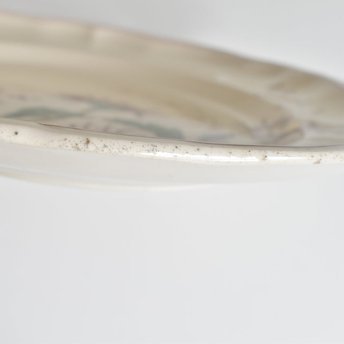 裏面の縁に、製造時にできたと思われるごく僅かな釉薬の剥がれがございますが、ご使用や美観を損なうものではなく、これからも長くご愛用いただける美品です。