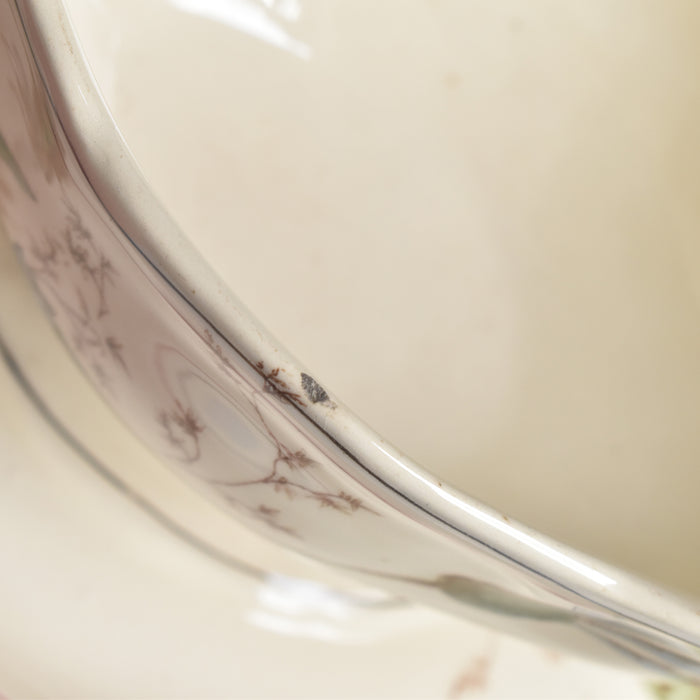 注ぎ口の裏に欠け、および縁部分に微細な傷が見られますが、全体的には大変綺麗な状態を保っています。