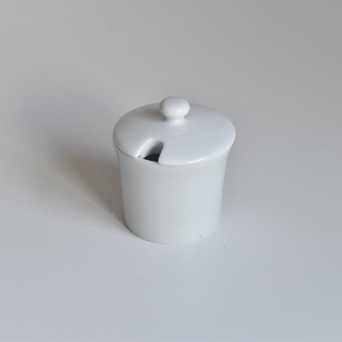 飾り気のないシンプルなデザインが魅力的な、小ぶりなサイズのマスタードポット。