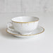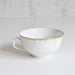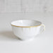 繊細なレリーフが施された白い磁器に、金彩が手描きで描かれており、上品で豪華なカップ&ソーサーです。