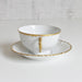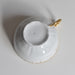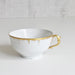 繊細なレリーフが施された白い磁器に、金彩が手描きで描かれており、上品で豪華なカップ&ソーサーです。