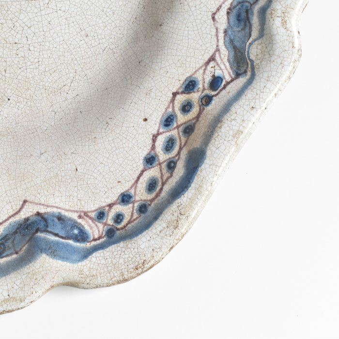 状態:貫入が見られます。釉薬の剥がれやヒビがございますがいいアンティーク感になり綺麗なプレートです。