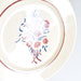 ハンドペイントのステンシルの大きめの花束が見込みにデザインされています。お花は赤色矢車菊とその後ろマーガレットのような花です。葉っぱは青色です。