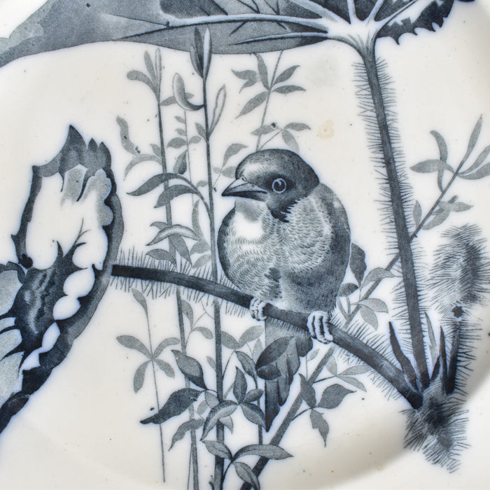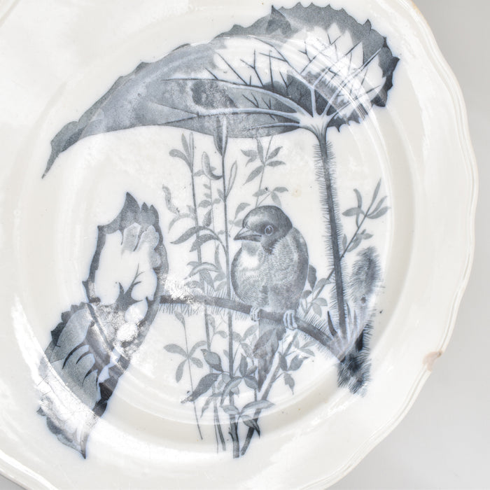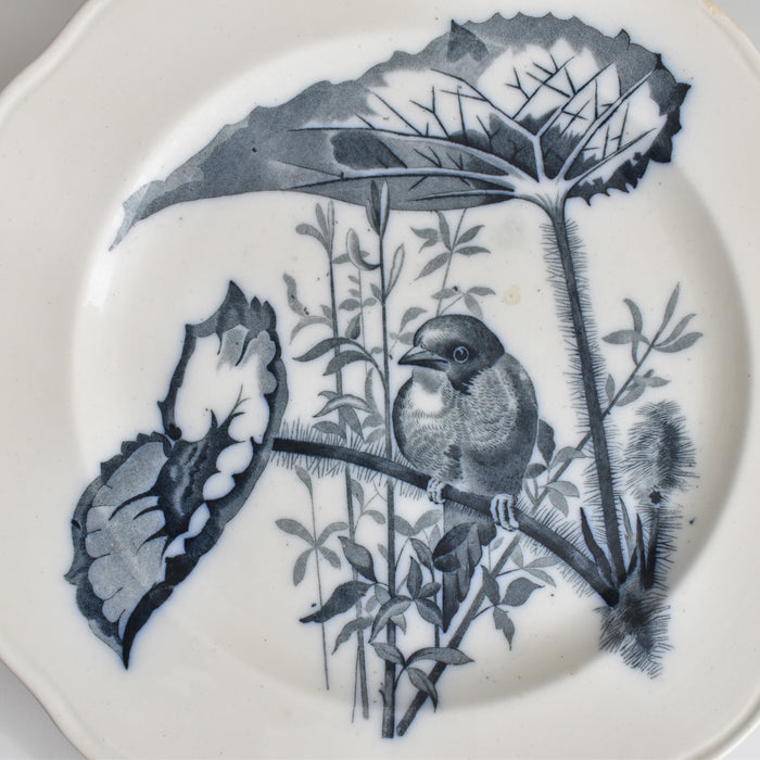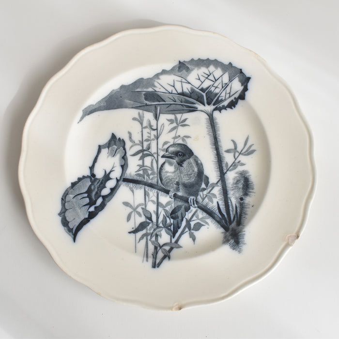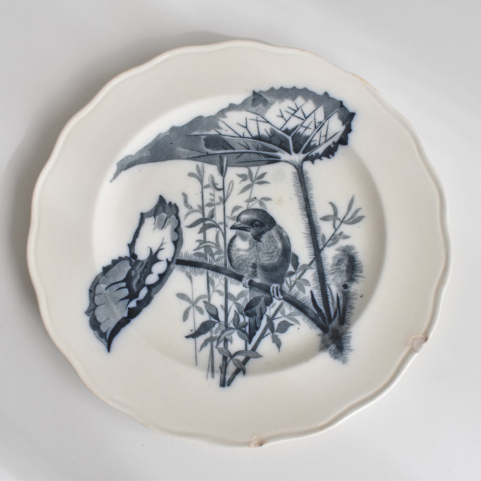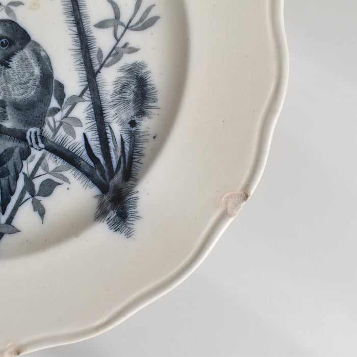 19世紀後半に作られた、愛らしい小鳥たちが様々なシーンで描かれた磁器製のアンティークプレートです。