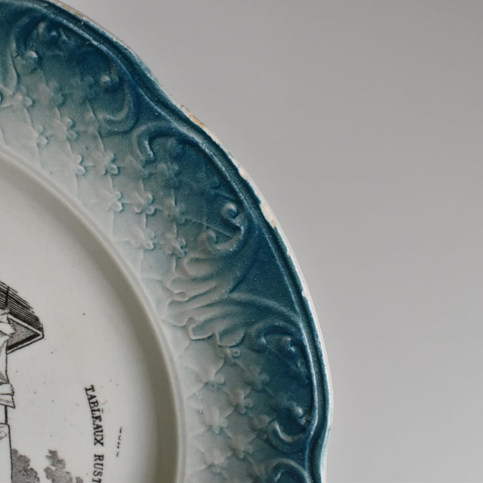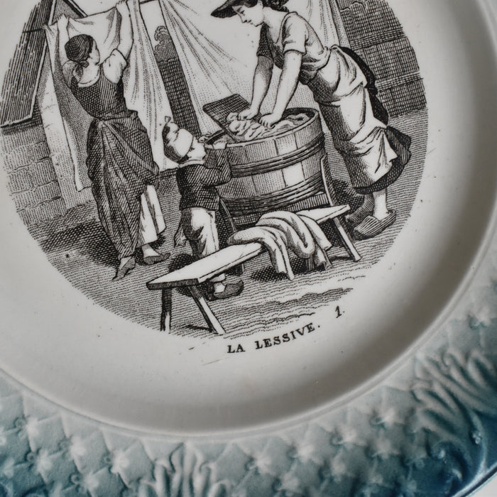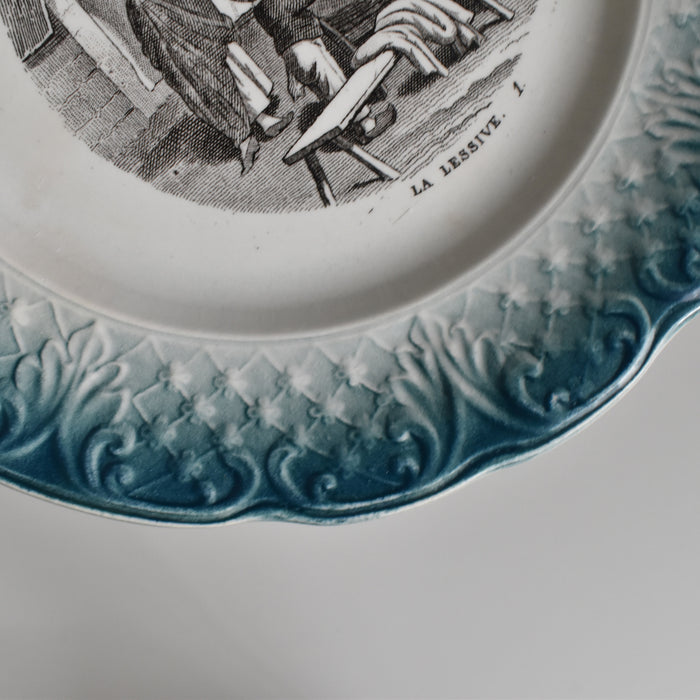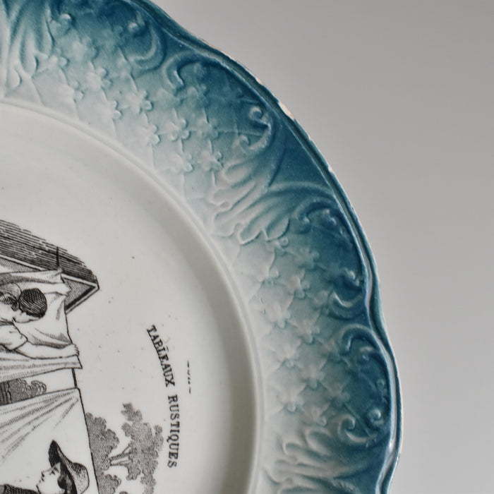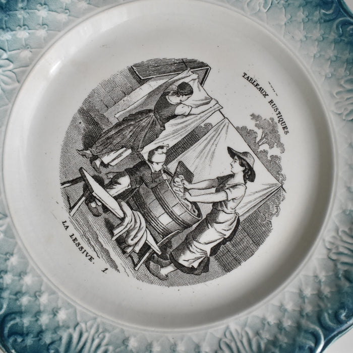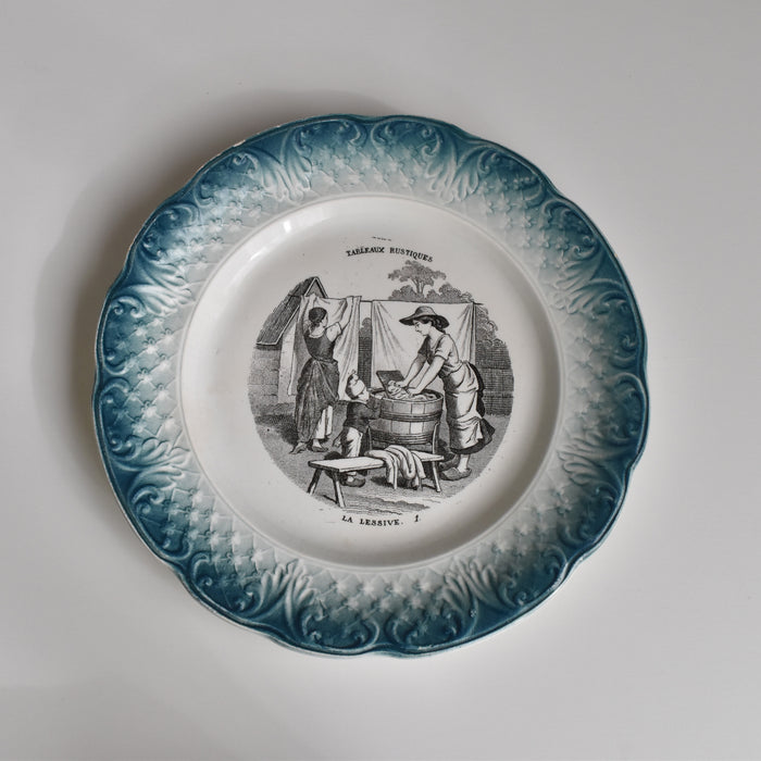 アンティークデザートプレート クレールフォンテーヌ Tableaux Rustiques 1.La Lessive