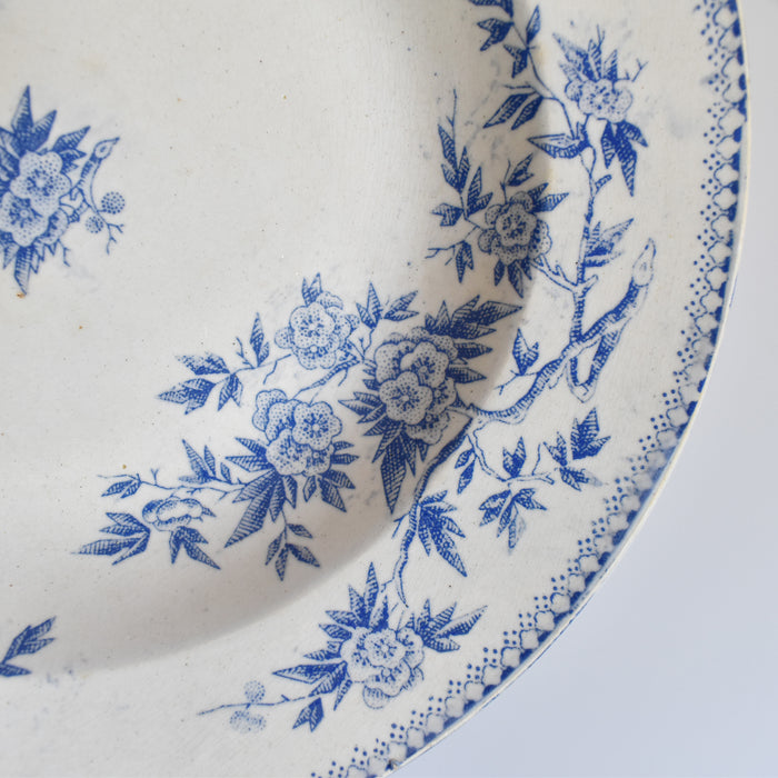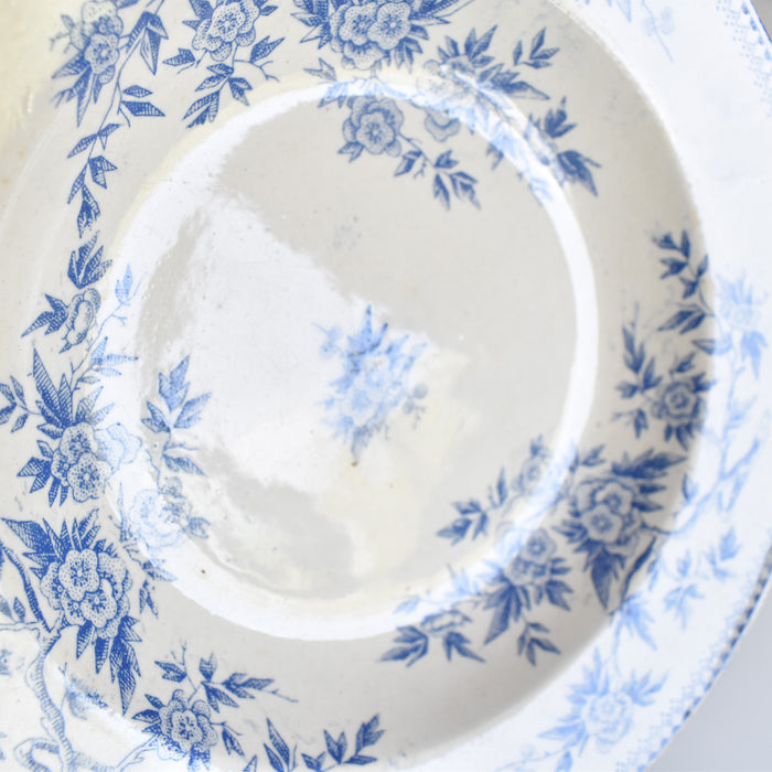 ブルーの花柄が特徴的な深皿です。定番のアンティークスタイルで、洗練された雰囲気を醸し出します。