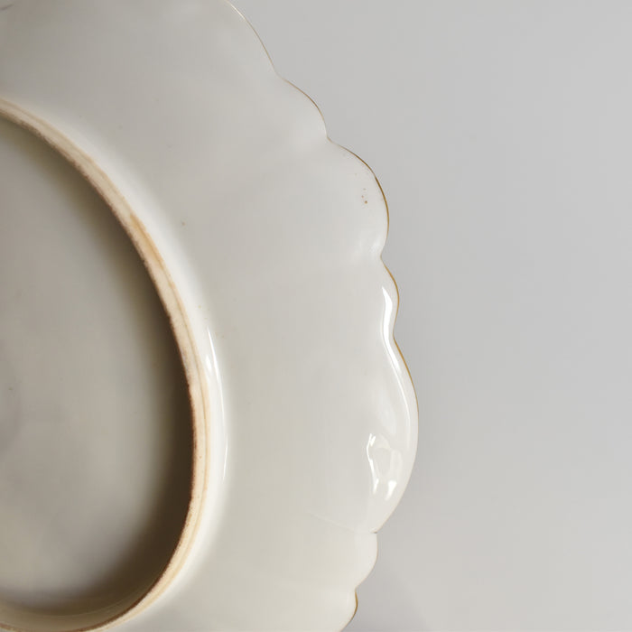 リムの形やレリーフも美しく、目を引く一品です。縁は金彩が施され、空間を美しく引き締めます。