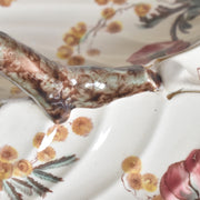 可憐なミモザの黄色と、春を告げるアネモネのピンクが繊細なタッチで描かれており、19世紀末〜20世紀初頭のフランス・アールヌーヴォーの空気感をそのまま閉じ込めたような逸品です。