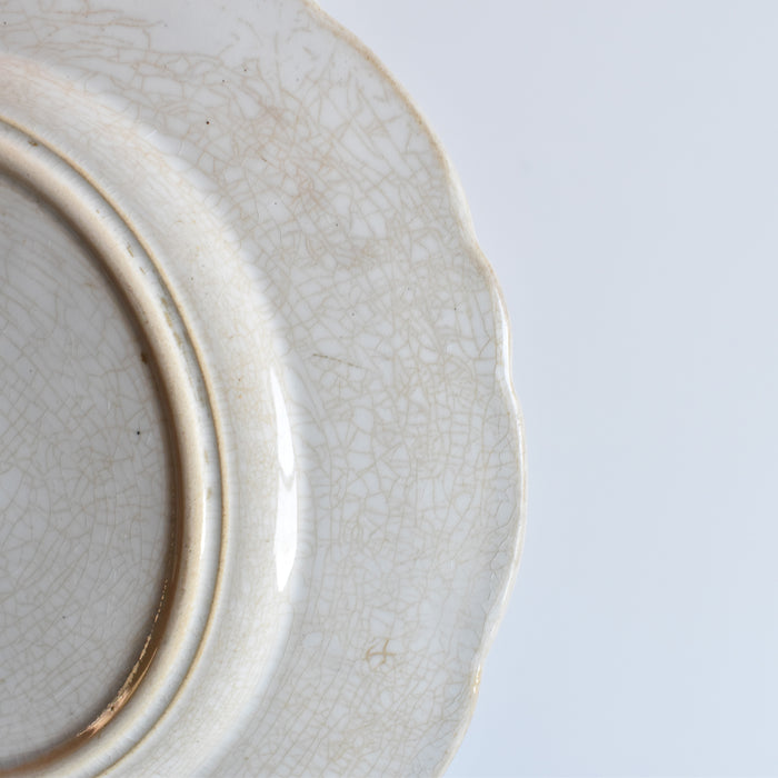 状態:全体的に貫入が広がり、着色やカトラリー跡が見られます。カケやヒビはなく良い状態です。