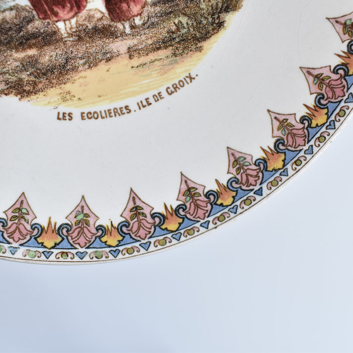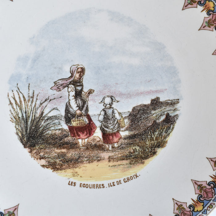 アンティーク絵皿 U&Cサルグミンヌ Les ecolieres Iles de croix