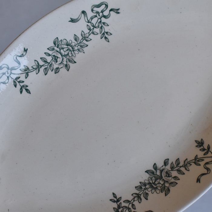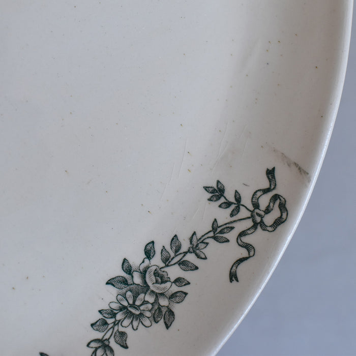 四隅に描かれた花やリボンの柄が可愛らしいラヴィエ。薄いクリーム色とモスグリーンの絵柄がとてもよく合います。