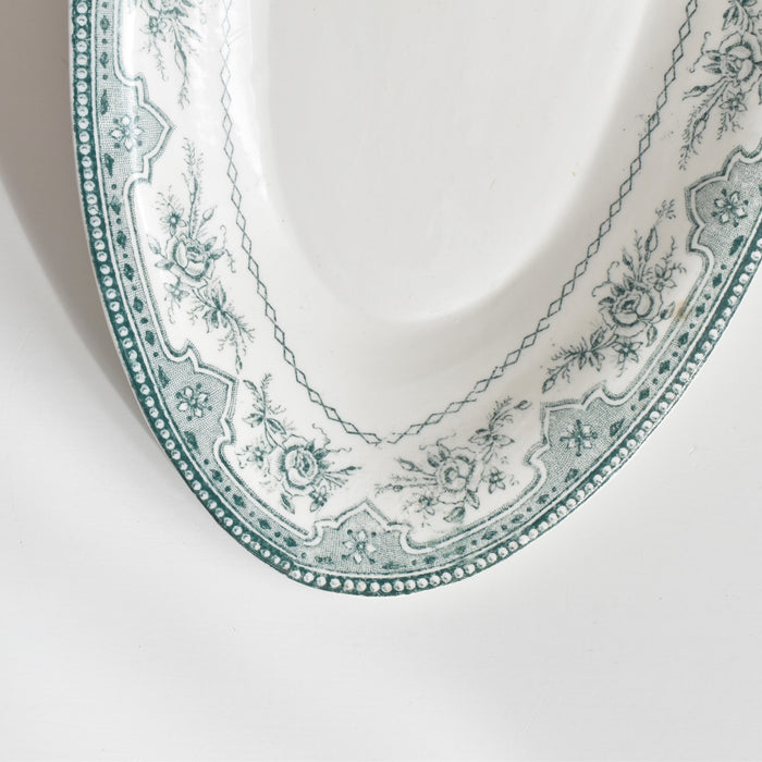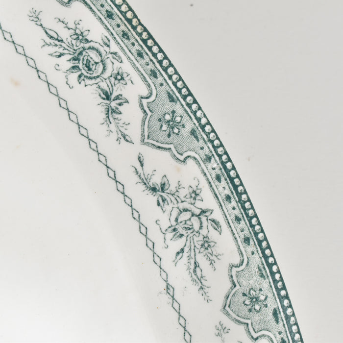 バラや小花が描かれた、グリーン系の素敵なラヴィエです。オナン窯ならではの温かみのある色使いと、上品なデザインが特徴です。