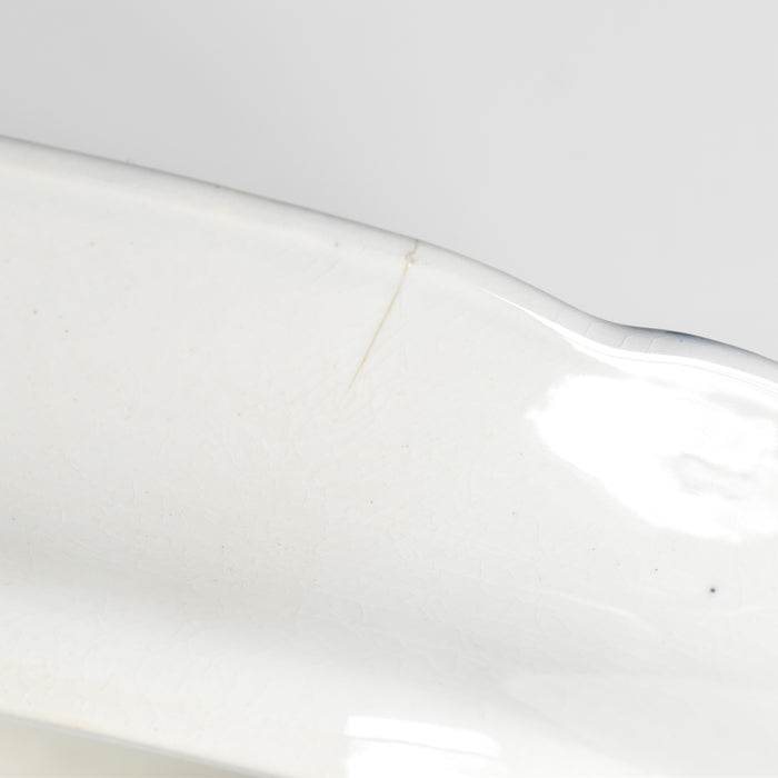 状態: 貫入が見られ縁から2 センチ程度のライン(ヒビ)が見られますが目立ちません。全体的に綺麗な状態です。