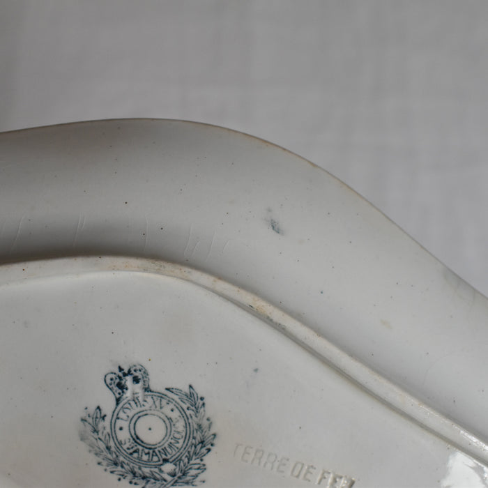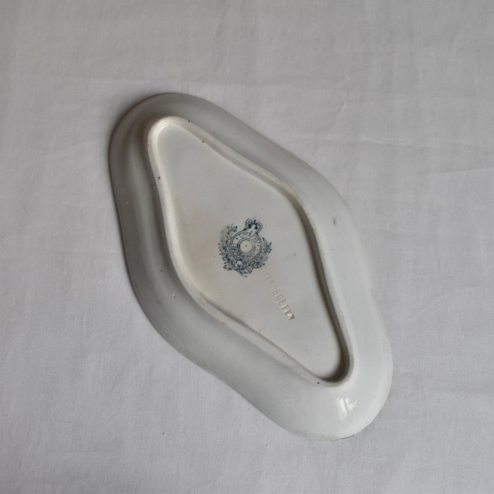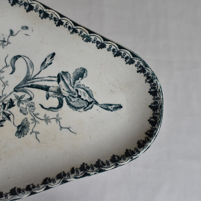 ロカイユ式のダイナミックな花のブーケが描かれたラヴィエ。藍色で描かれることでラインが強調され、
