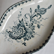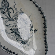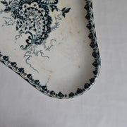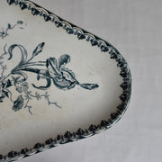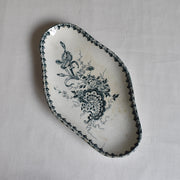ロカイユ式のダイナミックな花のブーケが描かれたラヴィエ。藍色で描かれることでラインが強調され、