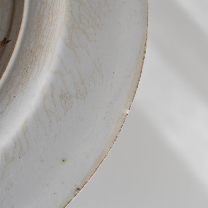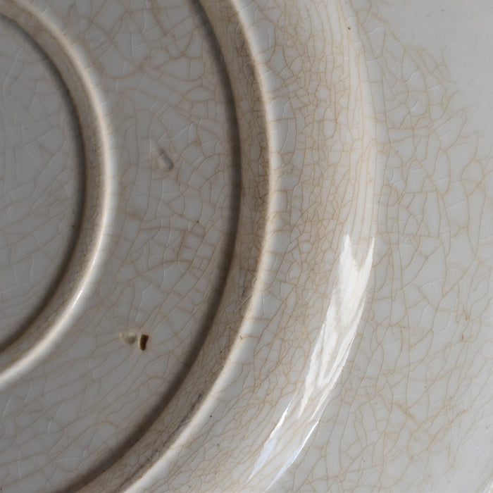 状態:貫入や着色、またカトラリー跡も見られ使用感があるお皿です。アンティークの穏やかな雰囲気を楽しんでいただけます。