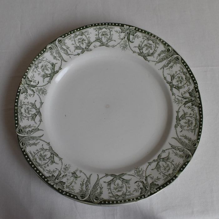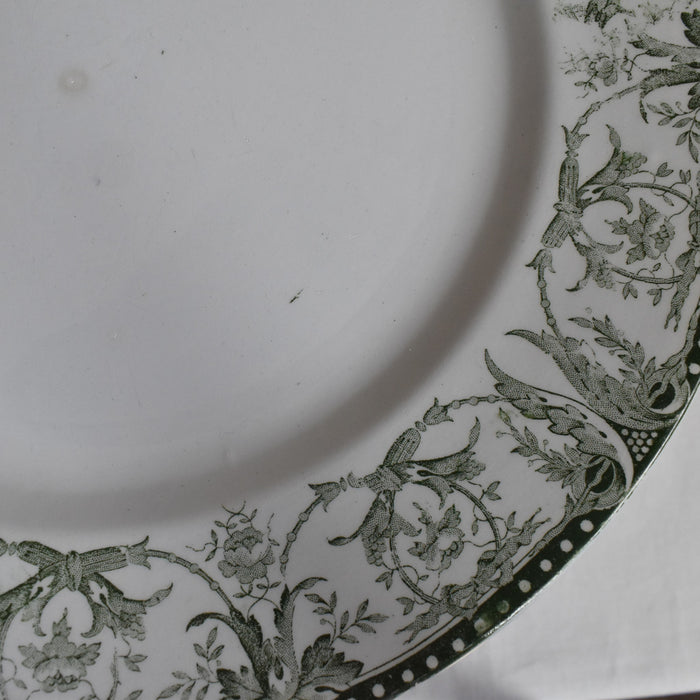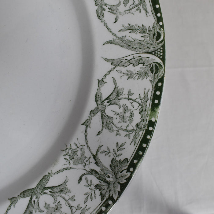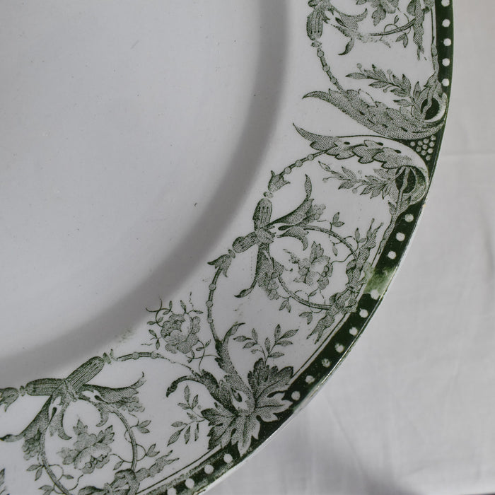 緑色の葉っぱと花のガーランドが、美しくお皿を縁取ります。賑やかで華やかな絵柄ですが、優しくて深みのある緑色がクラシカルで落ち着いた雰囲気を作り出しています。