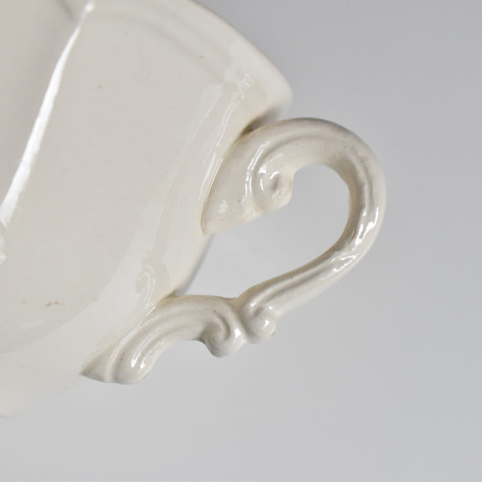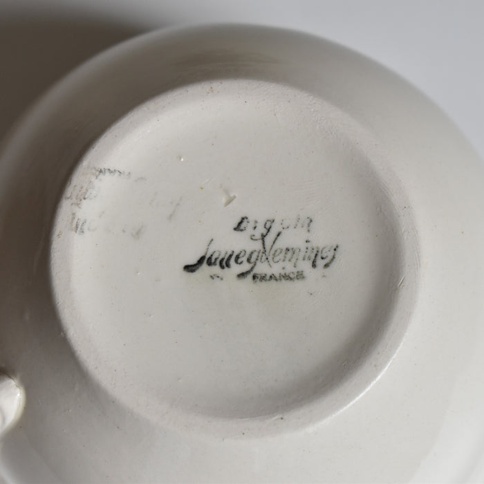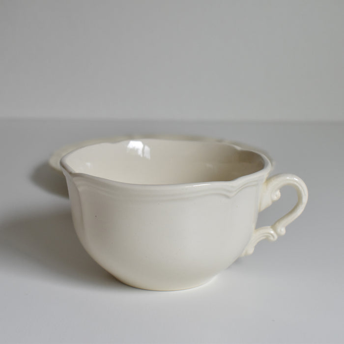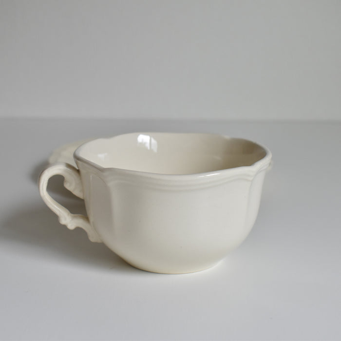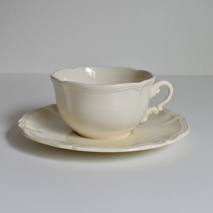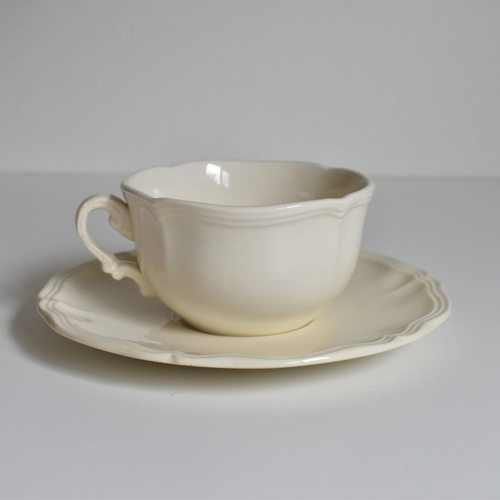 Digoin & Sarreguemines窯のヴィンテージのチョコレートカップアンドソーサー Ivoireシリーズ花リムです。